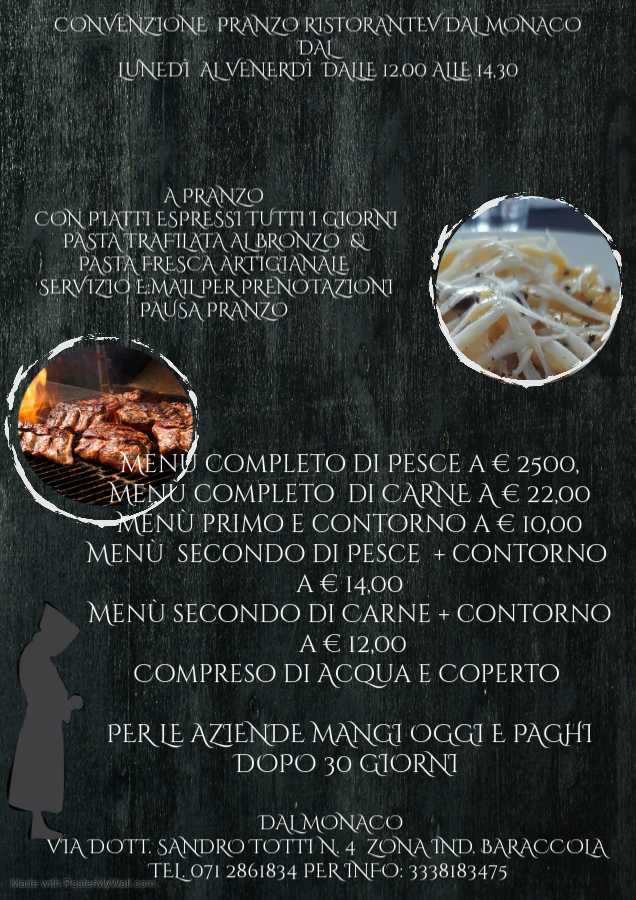 Welcome to Ristorante dal Monaco, a charming tavern nestled near the Uci Cinema in Ancona. This eatery specializes in delivering a delightful dining experience with a menu that embraces traditional Italian flavors. Conveniently located on Via Baraccola, it offers a cozy atmosphere perfect for both quick lunches and leisurely dinners.
